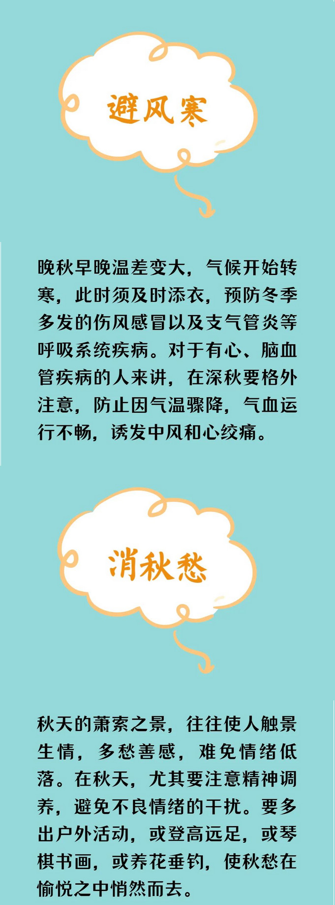 秋天,氣候由熱變涼,人體腠理由疏松轉(zhuǎn)為致密,陽(yáng)氣開始潛藏于內(nèi)。秋風(fēng)不是總送爽,在暑往寒來、氣候變化無常的“多事之秋”,養(yǎng)生務(wù)須趨利避害,順應(yīng)天時(shí),注意以下三個(gè)階段的不同。